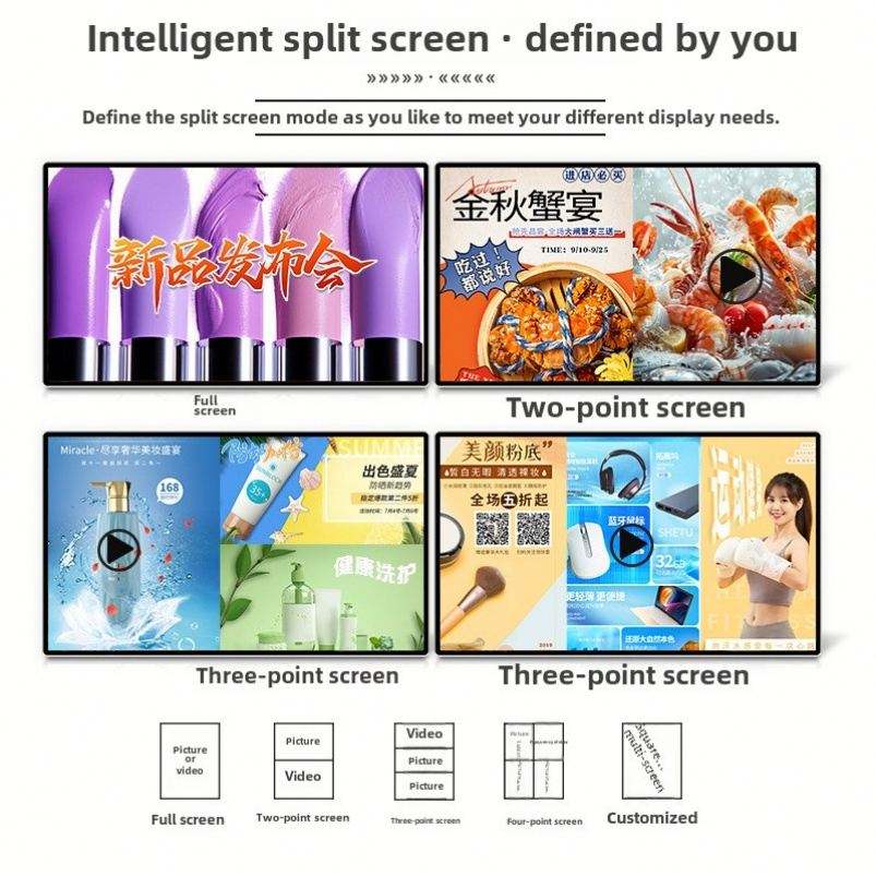 Máquina publicitaria montada en la pared todo en uno de 65 pulgadas para Milk Tea Catering Red de promoción Pantalla dividida para exhibición