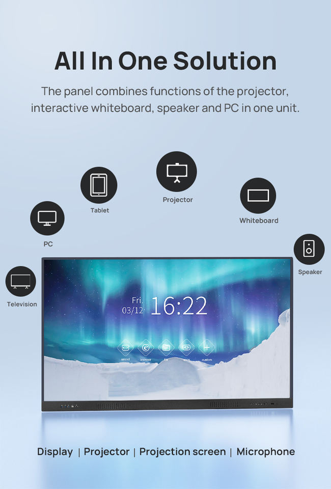 Pizarra Digital Interactiva Táctil de 65 Pulgadas con Pantalla LCD Plana para Enseñanza Escolar