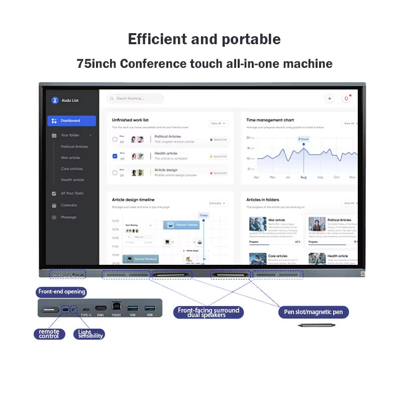 Pantalla Interactiva Plana Táctil de 65 Pulgadas ODM 4K, Pizarra Interactiva Inteligente para Aula y Educación