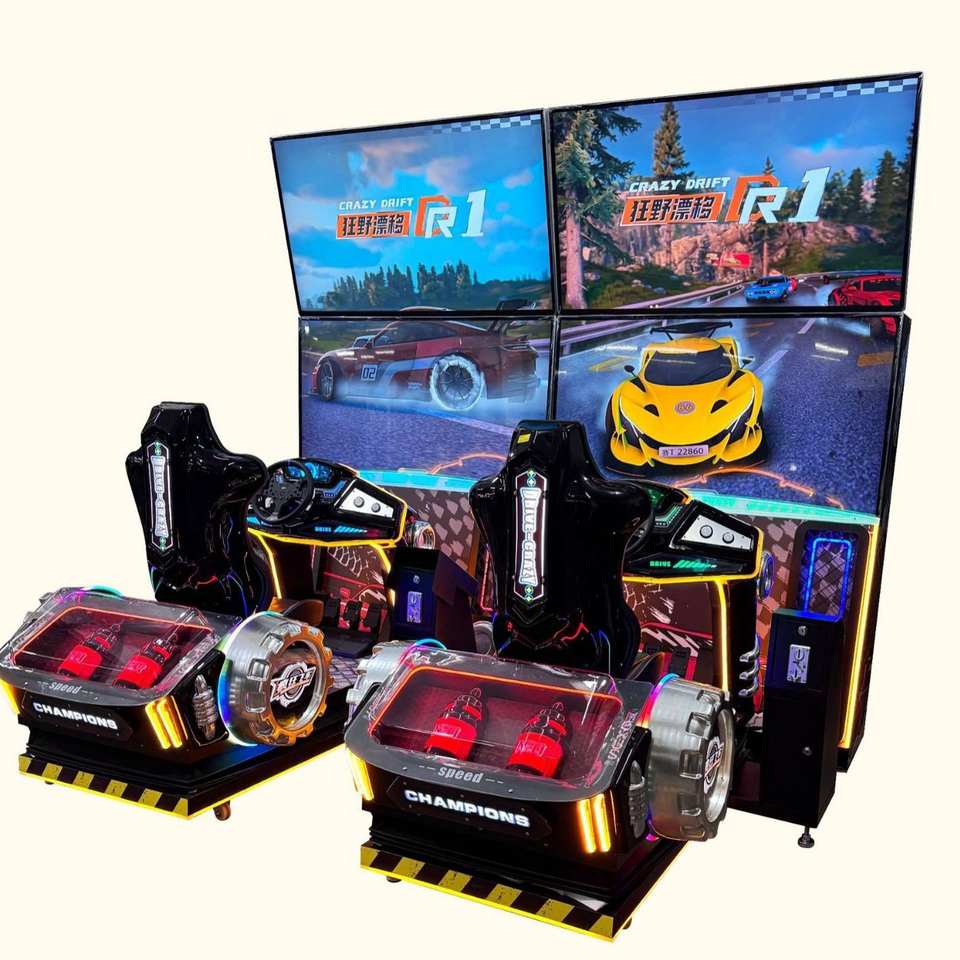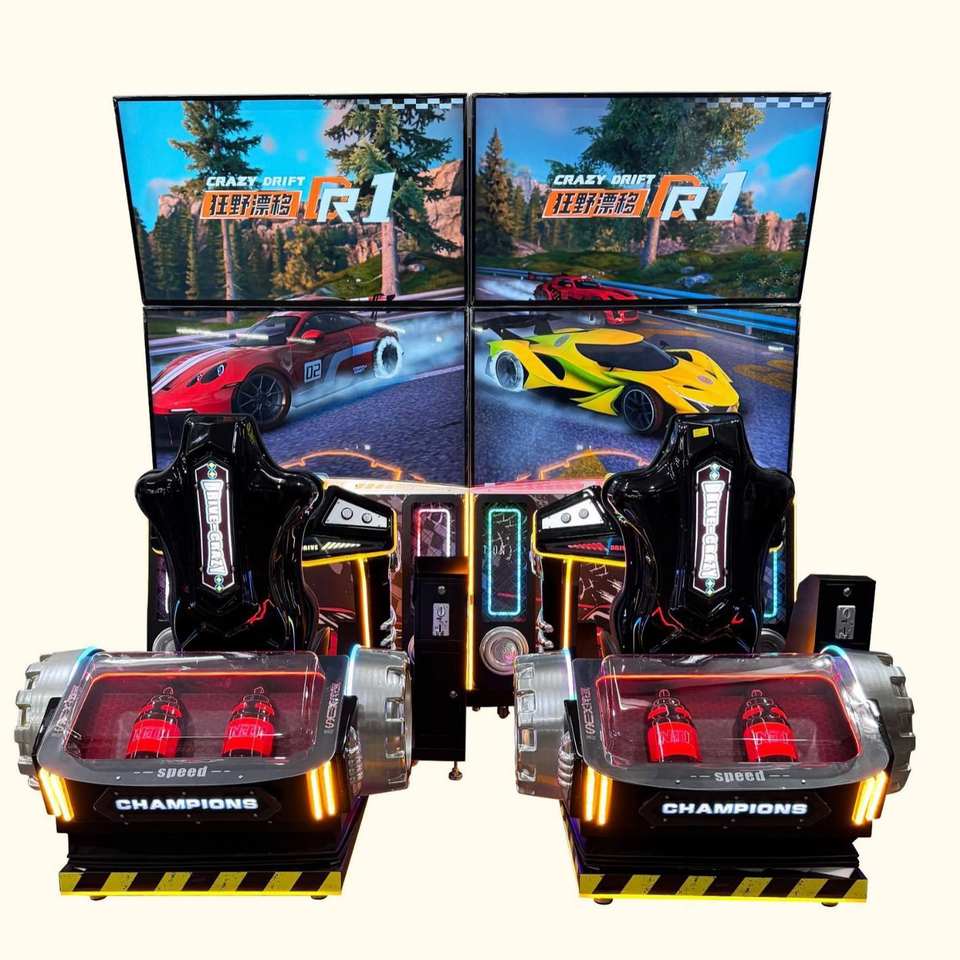 Máquina de carreras arcade de 65 pulgadas con doble pantalla, operada con monedas, consola de carreras metálica, máquina de juegos arcade para niños.