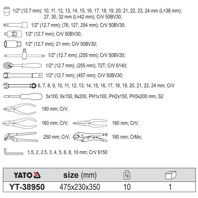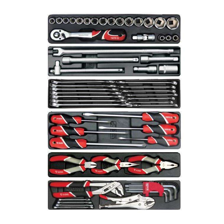 Juego de herramientas de reparación de automóviles de 65 piezas con llave de trinquete y caja de herramientas portátil YT-38950