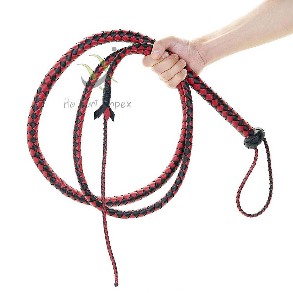 Látigo de Cuero Sintético Hecho a Mano de 65 Pulgadas, Negro y Rojo, Látigo de Montar Resistente, Látigo de Vaquero