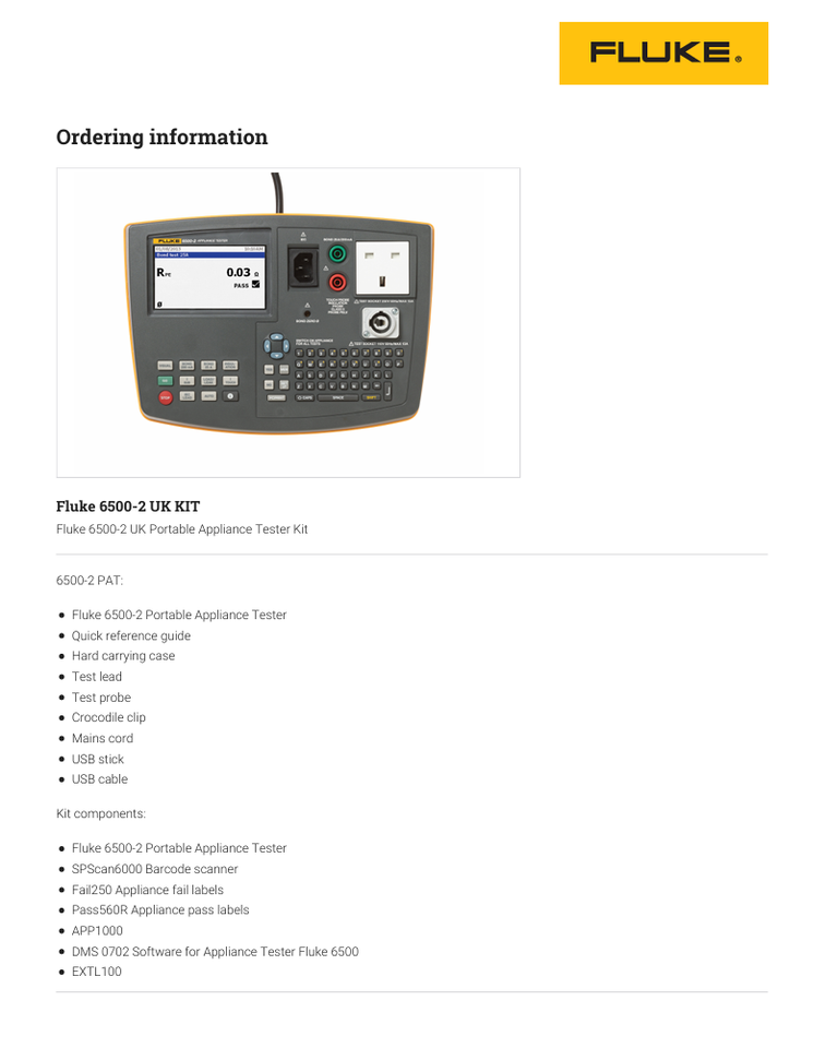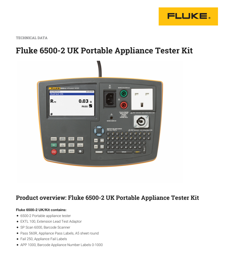 6500-2 Probador de Electrodomésticos Portátil Auto-TruTest con Exportación de Datos USB, Aislamiento Rápido de un Toque, Conexión a Tierra, Fuga RCD, 264V, 1 Año de Garantía