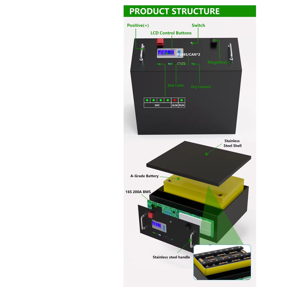 Sistema de almacenamiento de energía solar para el hogar de más de 6500 ciclos Batería de iones de litio 51,2 V 100Ah 120Ah 200Ah y 300Ah 48V Batería LiFePO4