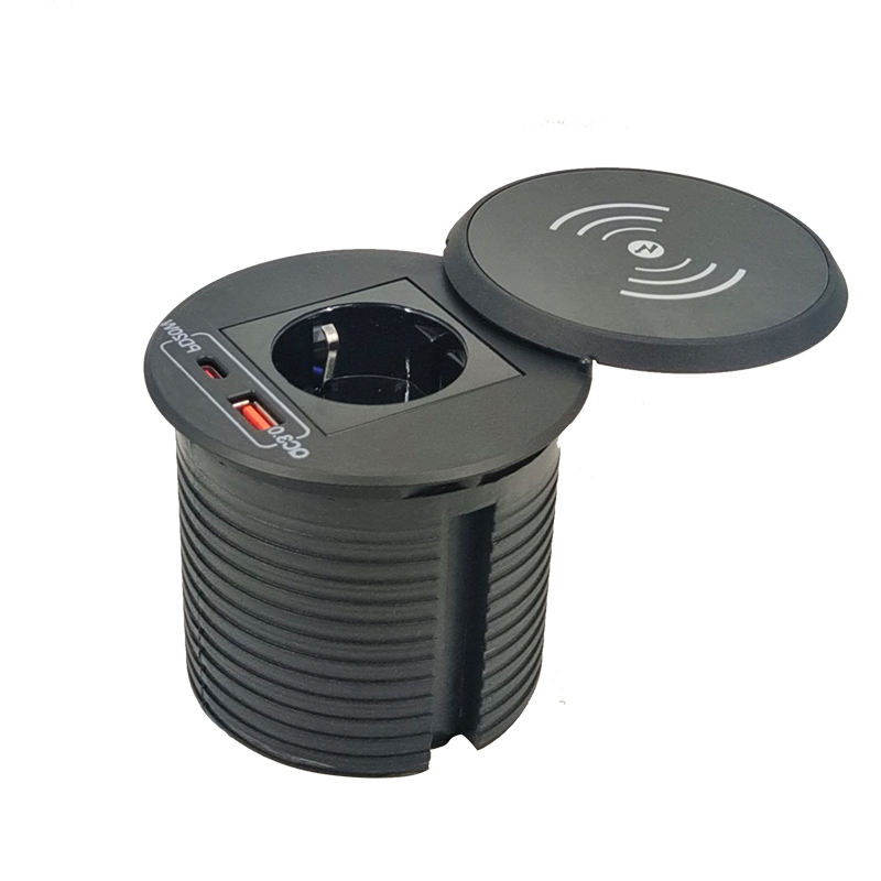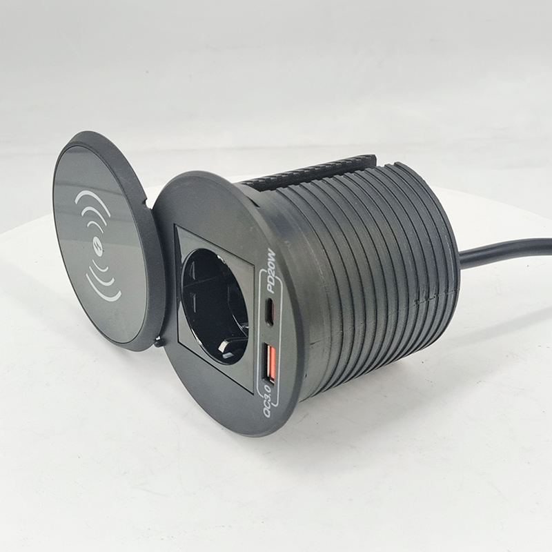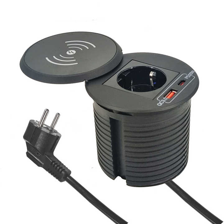 Enchufe de Corriente Redondo de 65W Personalizado de Fábrica al por Mayor, Enchufe Empotrado de Escritorio QC3.0 con Carga Inalámbrica Rápida para Teléfonos Móviles