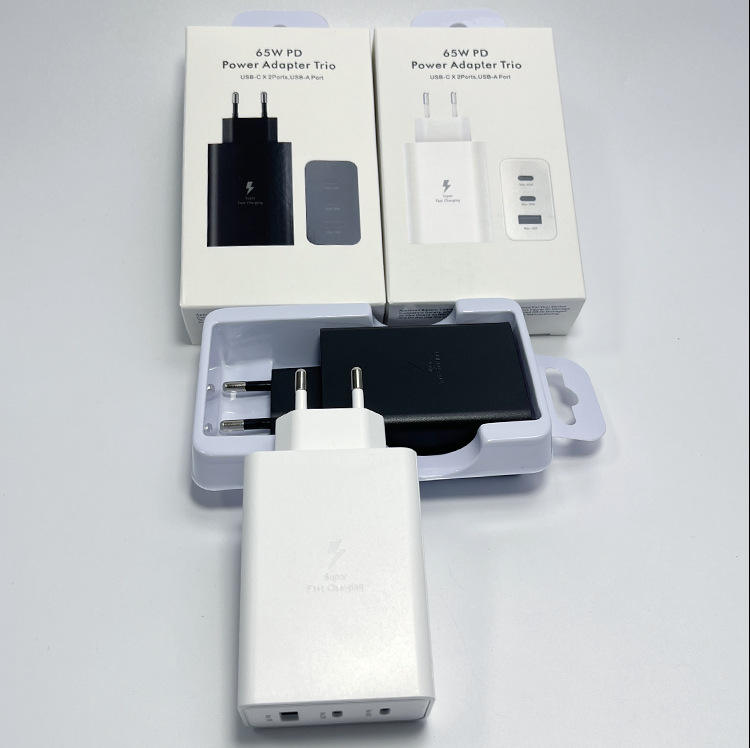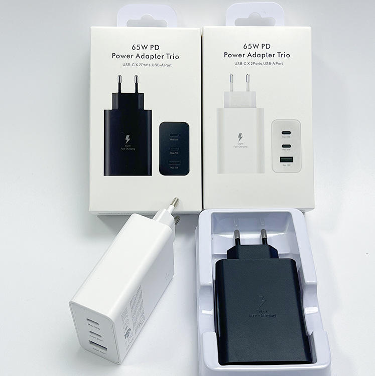 Cargador PD de 65W con 3 puertos USB-C, enchufe europeo, cargador rápido