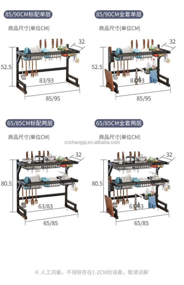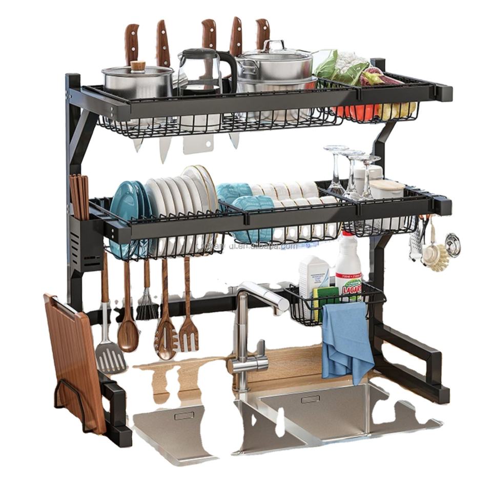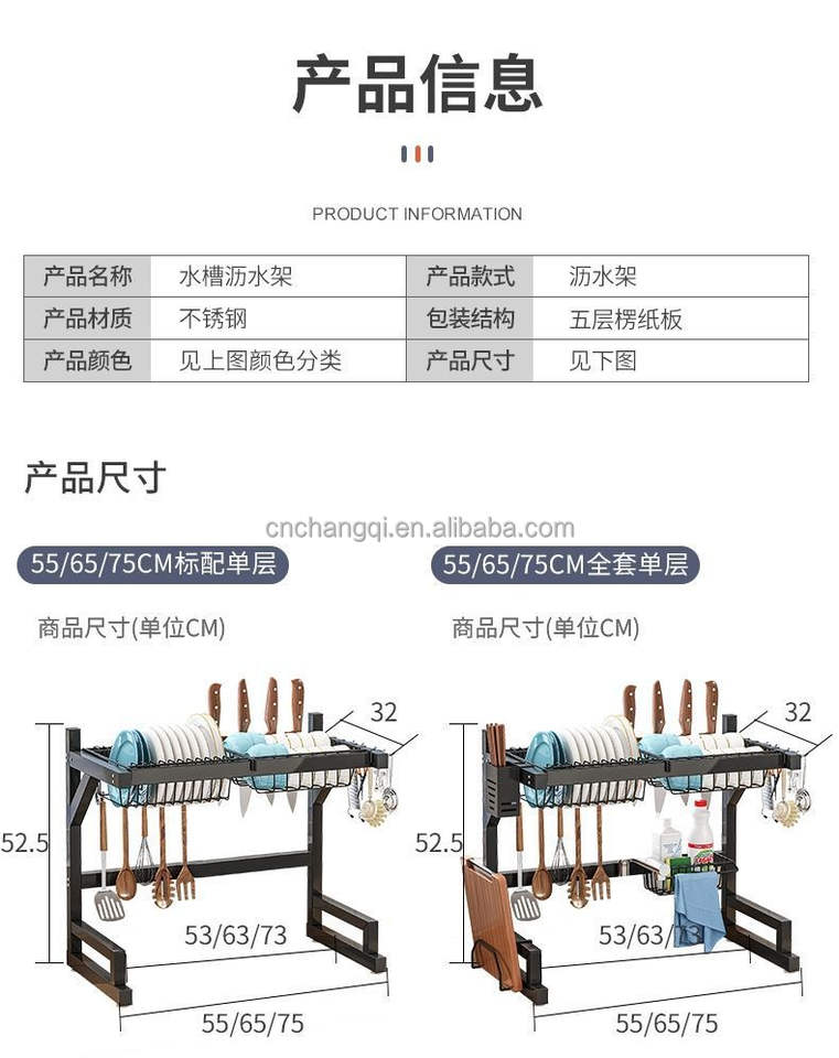 Estante para platos de doble capa de 65cm, estante de almacenamiento de cocina de dos niveles por encima del fregadero, estante de secado para platos, soportes organizadores para cuencos