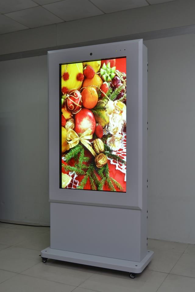 Señalización led de pie para publicidad al aire libre, 65 pulgadas, tótem de metal, camaera