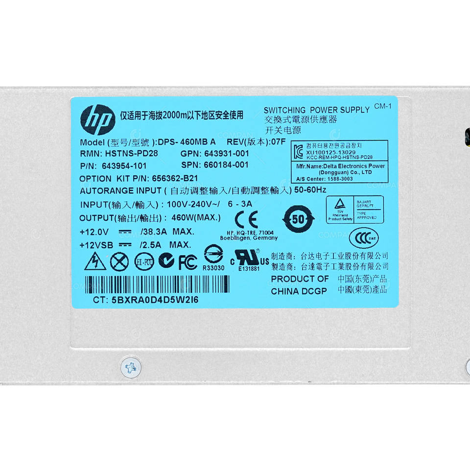 660184-001 Fuente de Alimentación HP 460W Platino para DL380 G8 Reacondicionada