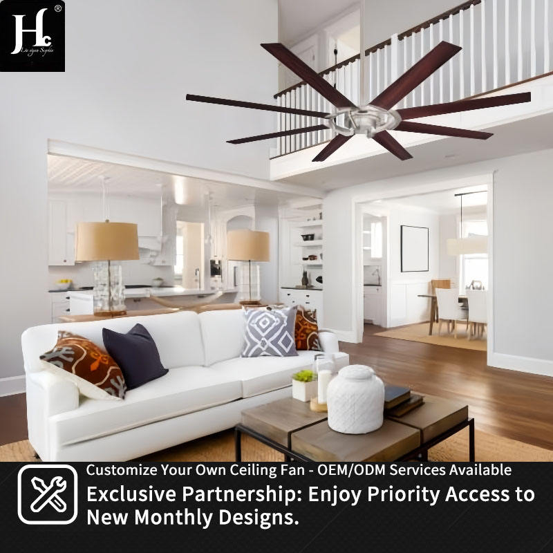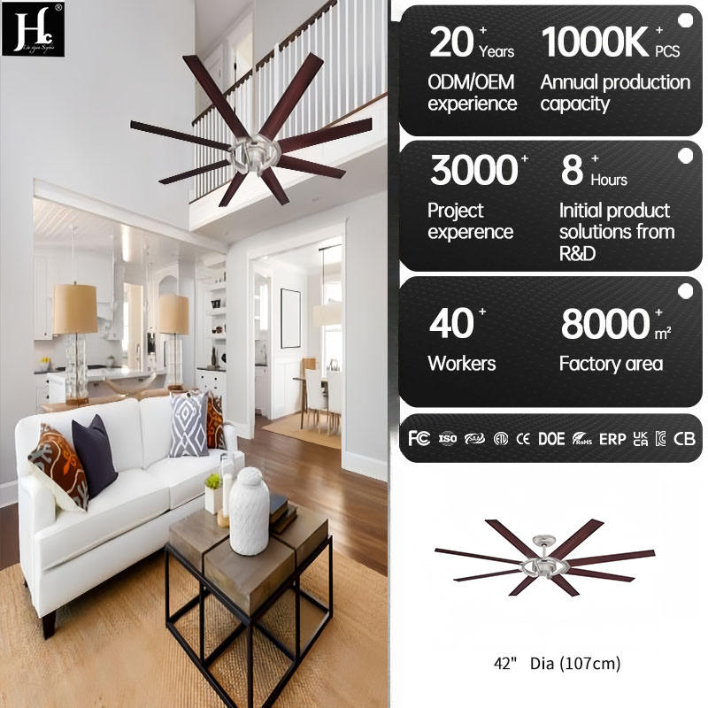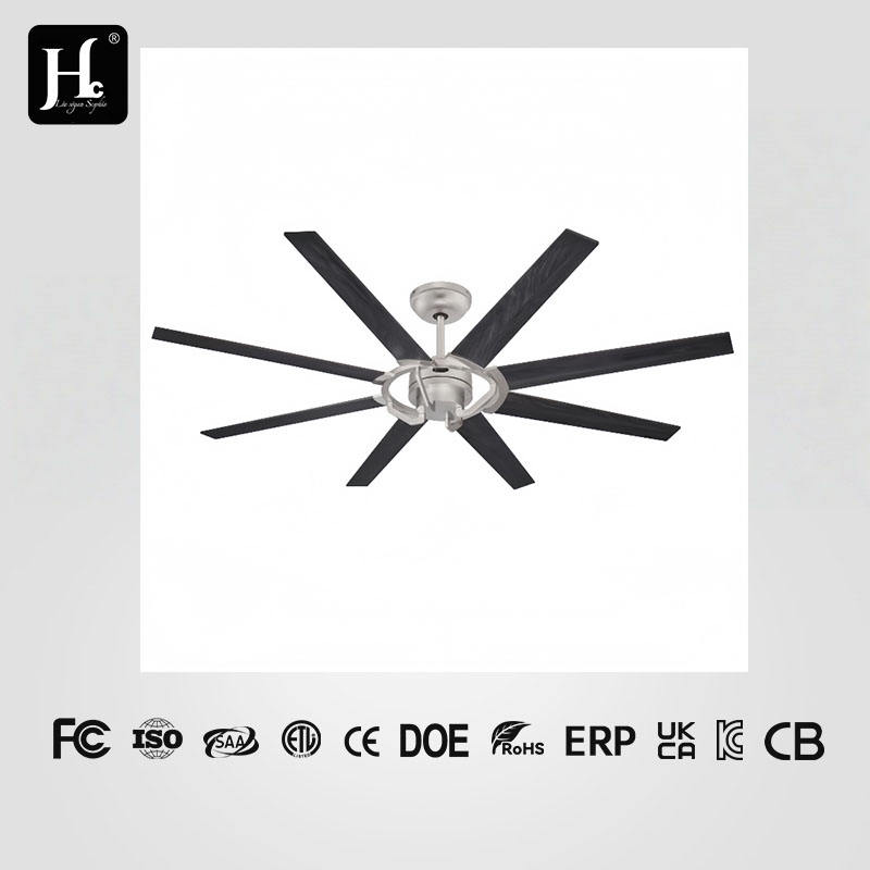 Ventilador de Techo LED de Alta Gama de 67 Pulgadas con 8 Aspas y Control Remoto, Material de Madera Contrachapada Negra y Metal para Hoteles
