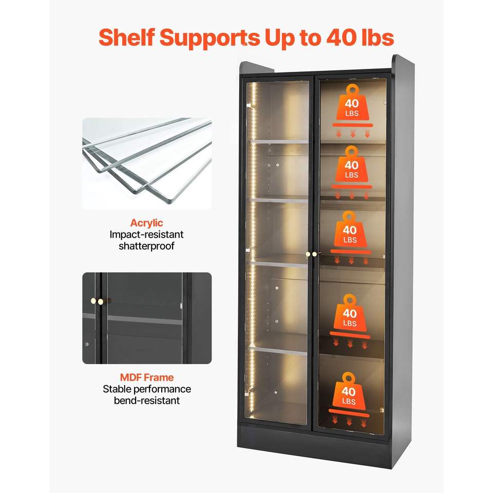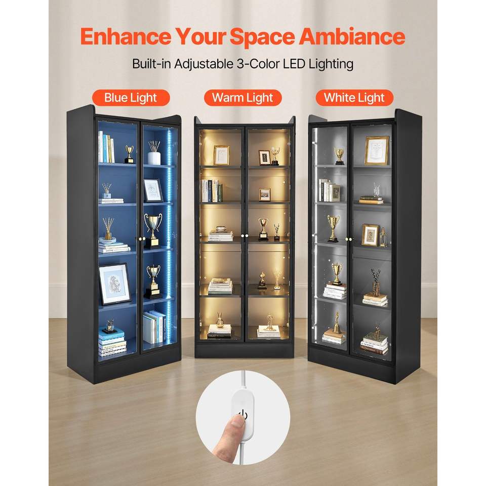 Vitrina Iluminada de 67 Pulgadas de Alto, 2 Estantes Ajustables, Gabinete de Almacenamiento de Coleccionables de 5 Niveles, Vitrinas Ajustables para Exhibición