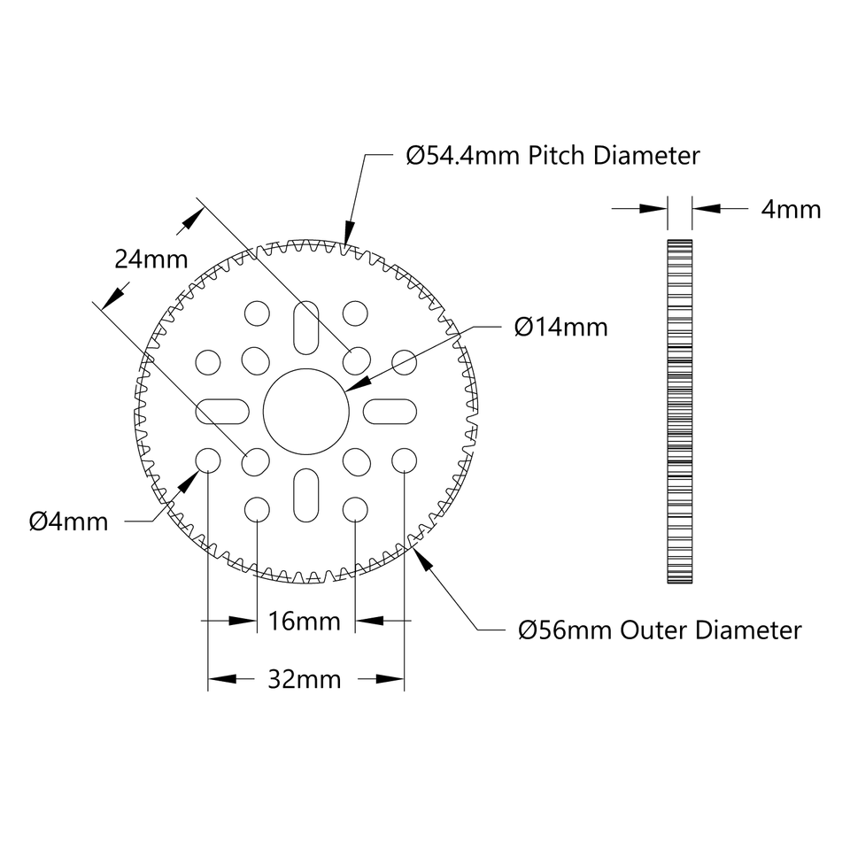 Engranaje de Aluminio de 68 Dientes para Montaje en Cubo (MOD 0.8, 4 mm de Grosor, 14 mm de Diámetro Interior) Robot STEM REV WCP FTC FRC