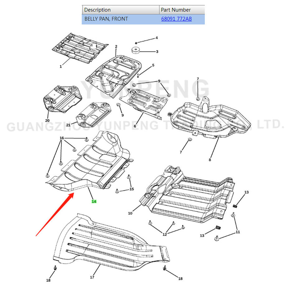 Cubierta de protección contra salpicaduras de motor 68091772AB para Eep Grand Cherokee WK Dodge 2011-2022 68091772AA