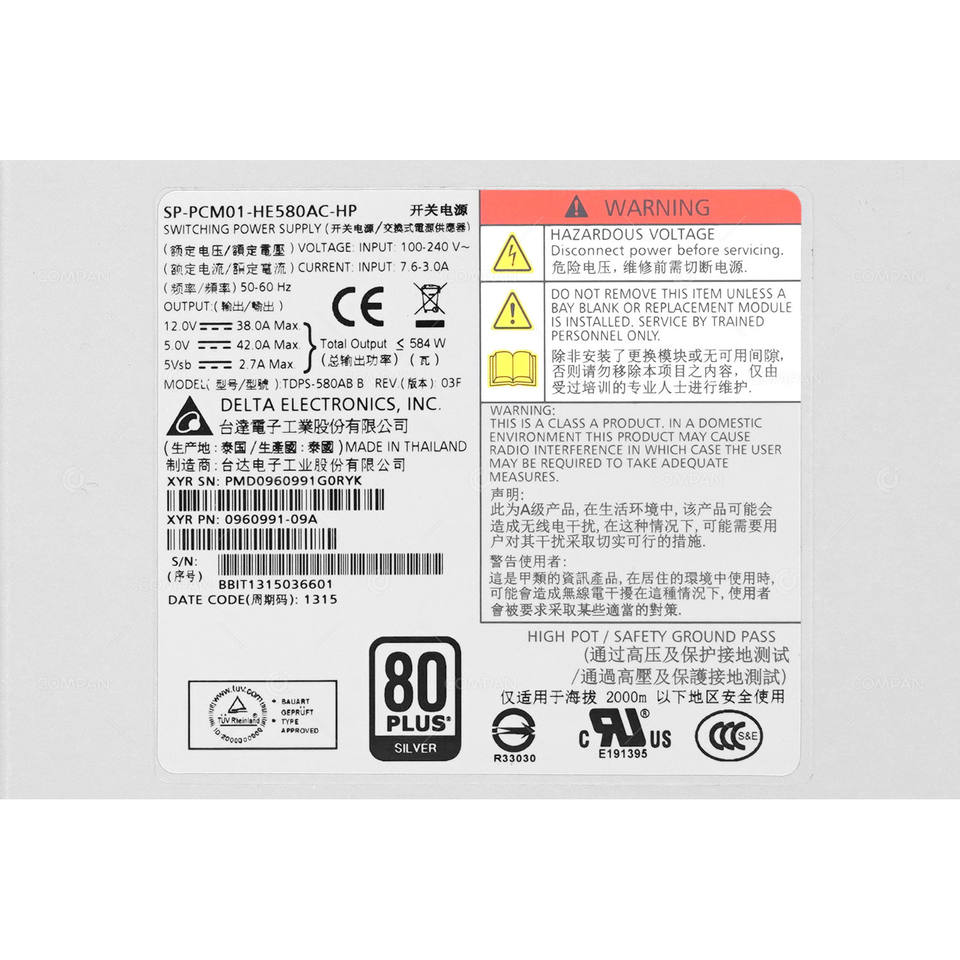 Fuente de Alimentación HP 683241-001 de 580W CA con Conexión en Caliente para 3PAR, M6710 M6720, Reacondicionada