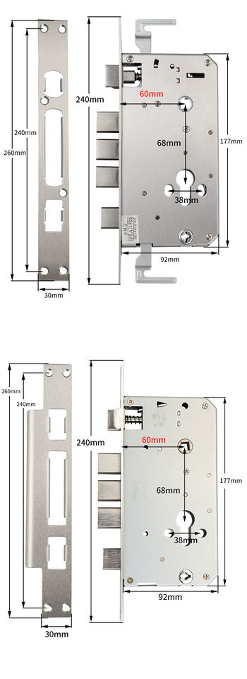 Cerradura de puerta de mortaja de alta seguridad 6860, cuerpo de cuatro balas con pestillo silencioso antirrobo, cerradura inteligente, accesorios especiales
