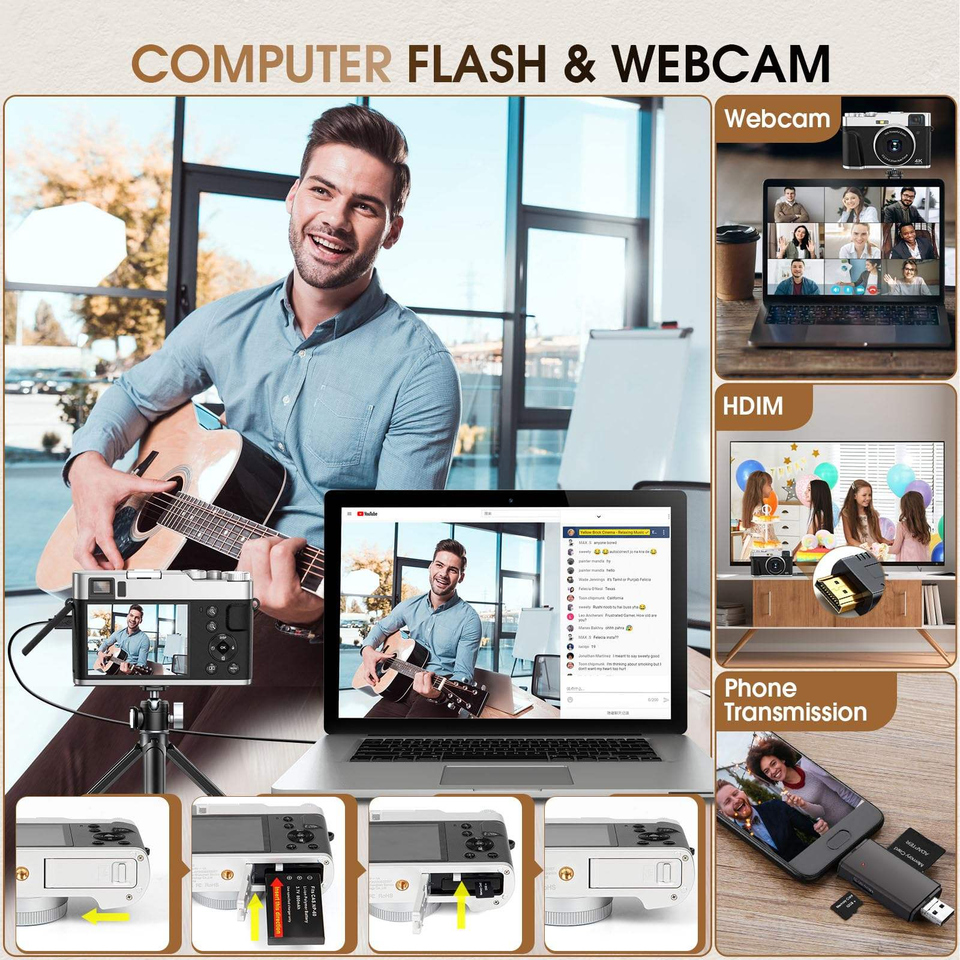 Cámara digital CCD retro de 68MP para selfies - Linda cámara compacta de nivel básico para estudiantes