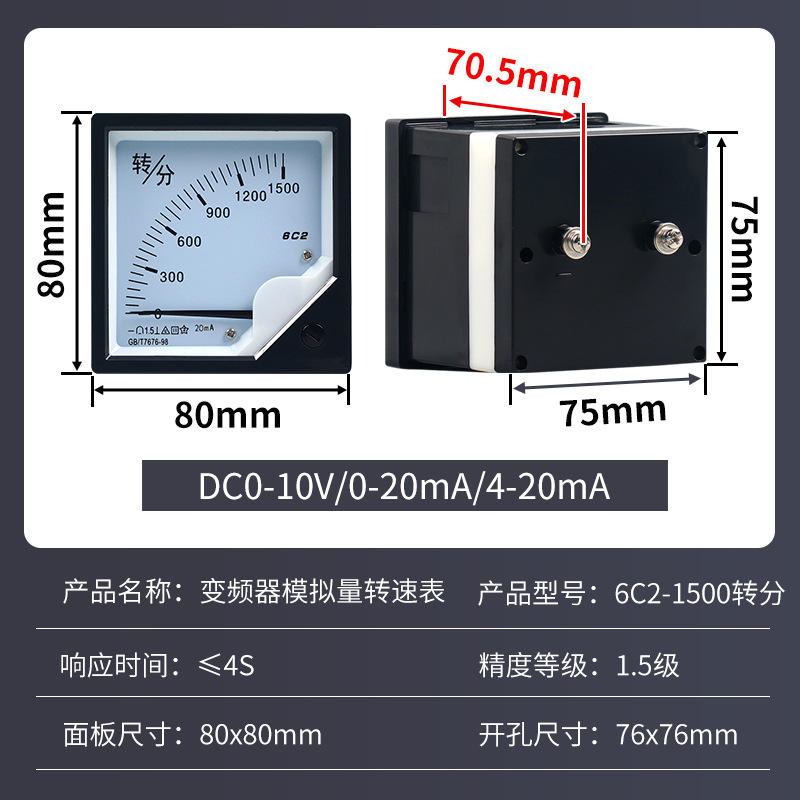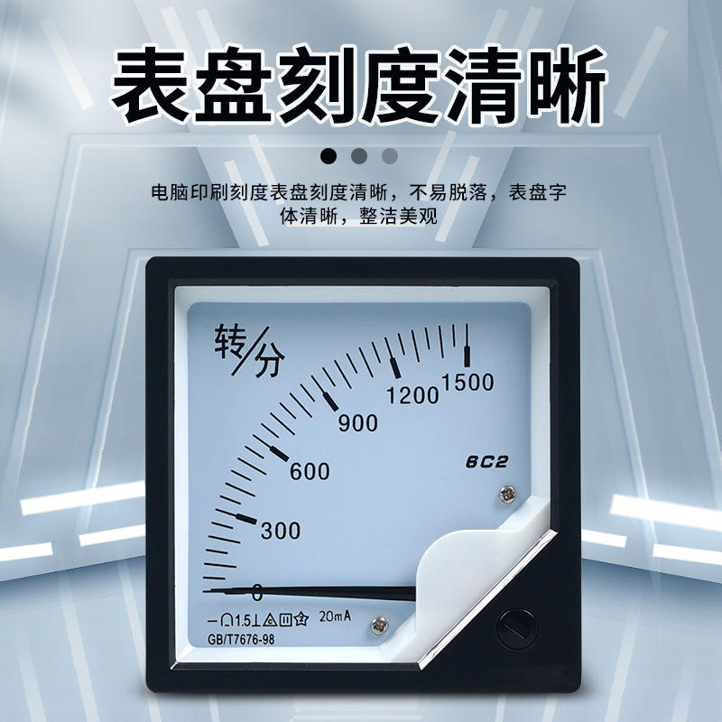 Tacómetro Analógico 6C2 de 1500 RPM, Medidor de Velocidad Industrial con Esfera Clara para Convertidor de Frecuencia