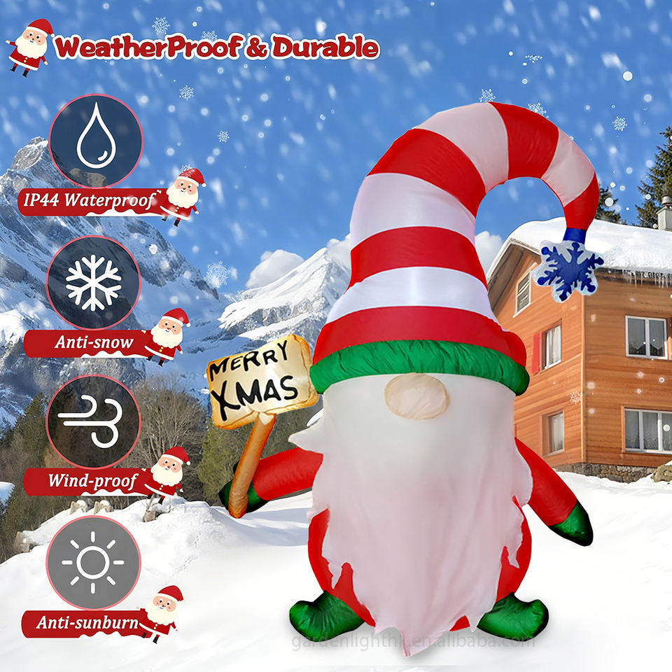 Product name:6FT Merry Xmas Inflatable Gnome with Light-Up Sign