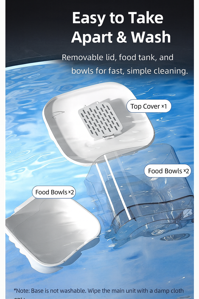 Automático, 2 en 1, Temporizador, horario de alimentación, compatible con ios, compatible con android, Material de la categoría alimenticia, Fácil de limpiar, Tazón extraíble, Ultra silencioso, Durable, Ligero, Transparente, Multifunción