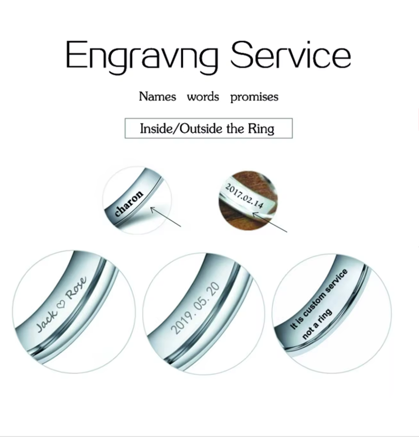 Joyería de tungsteno personalizada de 6MM y 8MM, anillo con letras personalizadas, anillo de boda de promesa, bandas de compromiso con acabado satinado mate de oro rosa negro