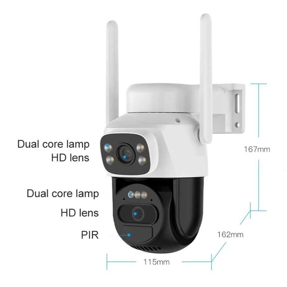 Cámara de Seguridad Solar de 6MP con Doble Lente, Grabación Continua de Video, WiFi de Doble Banda 2.4G/5G, IP66 Impermeable, Detección Humana