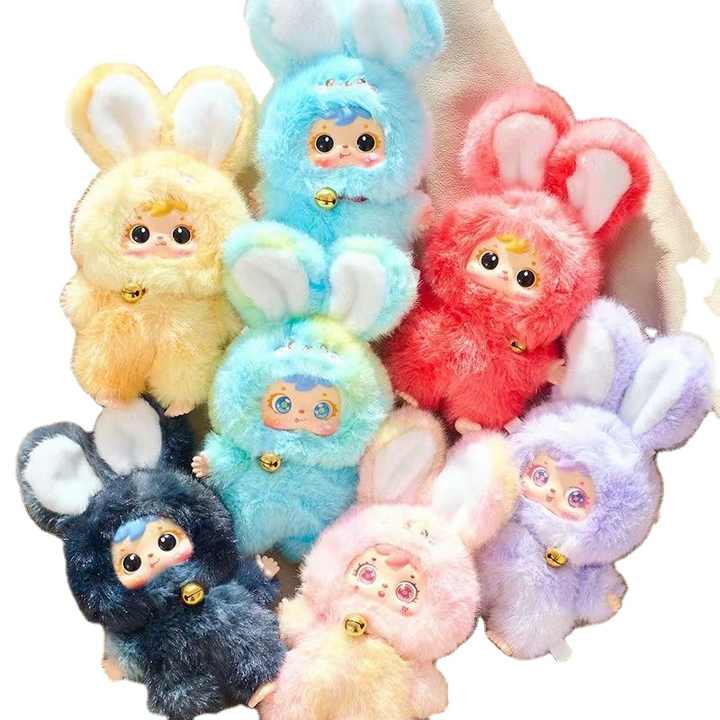 6 unids/caja Samuel Magic colorido conejo serie vinilo cara muñecos de peluche caja ciega llaveros decorativos lindo conejo colgante