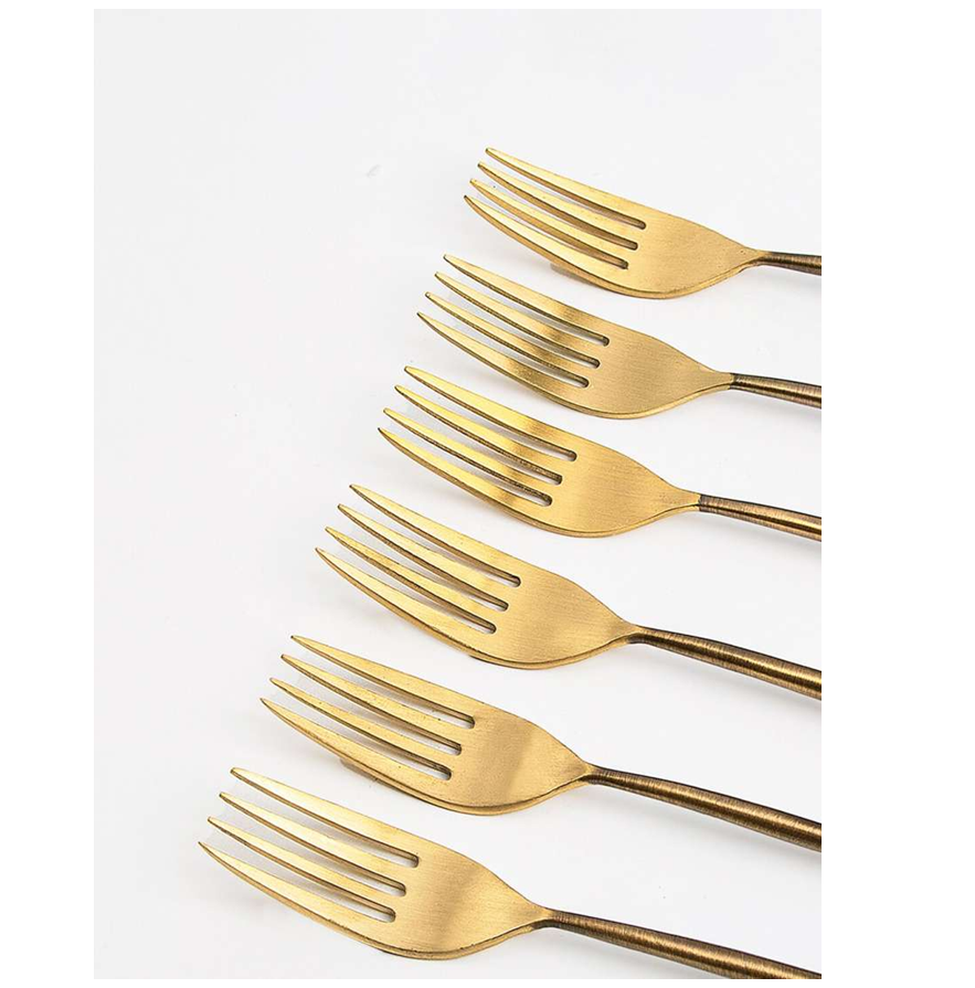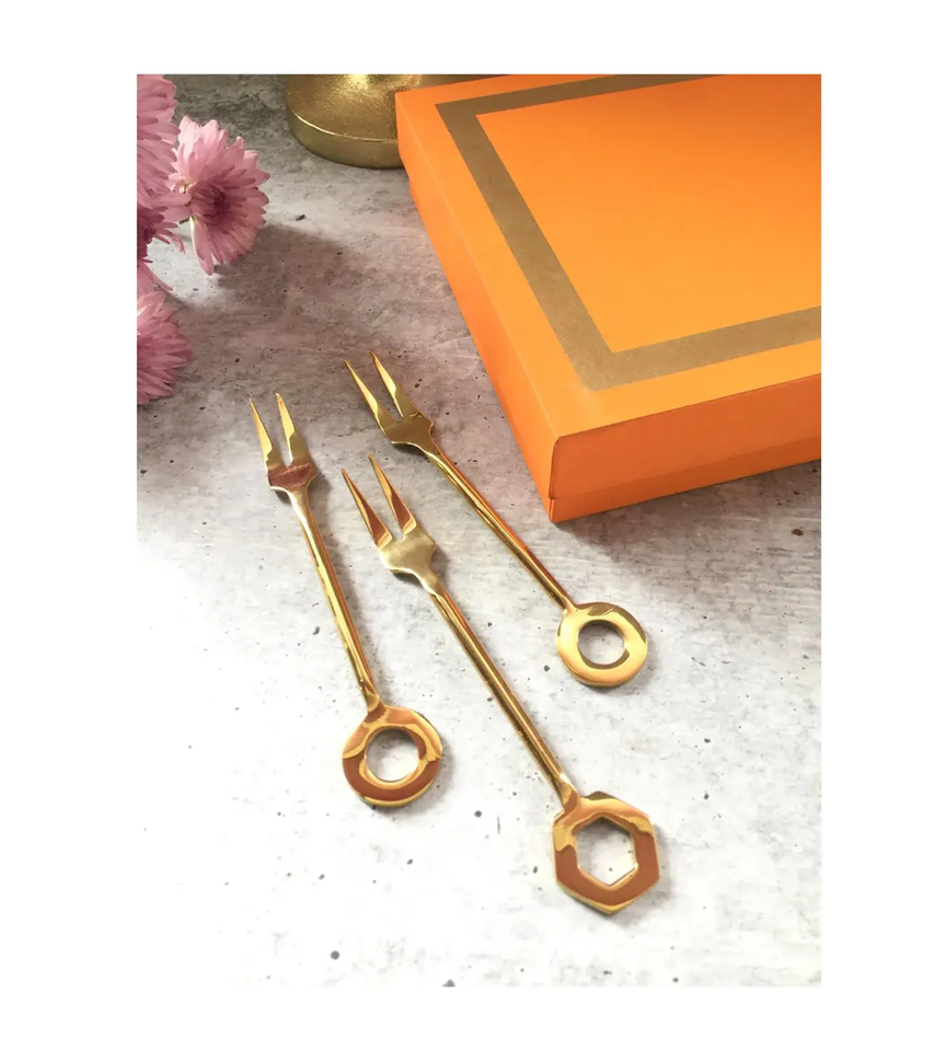 6 uds regalo de Navidad Tenedor de fruta de latón juego de cubiertos decoración de acero con espejo cuchara de postre Tenedor de fruta cuchara de café