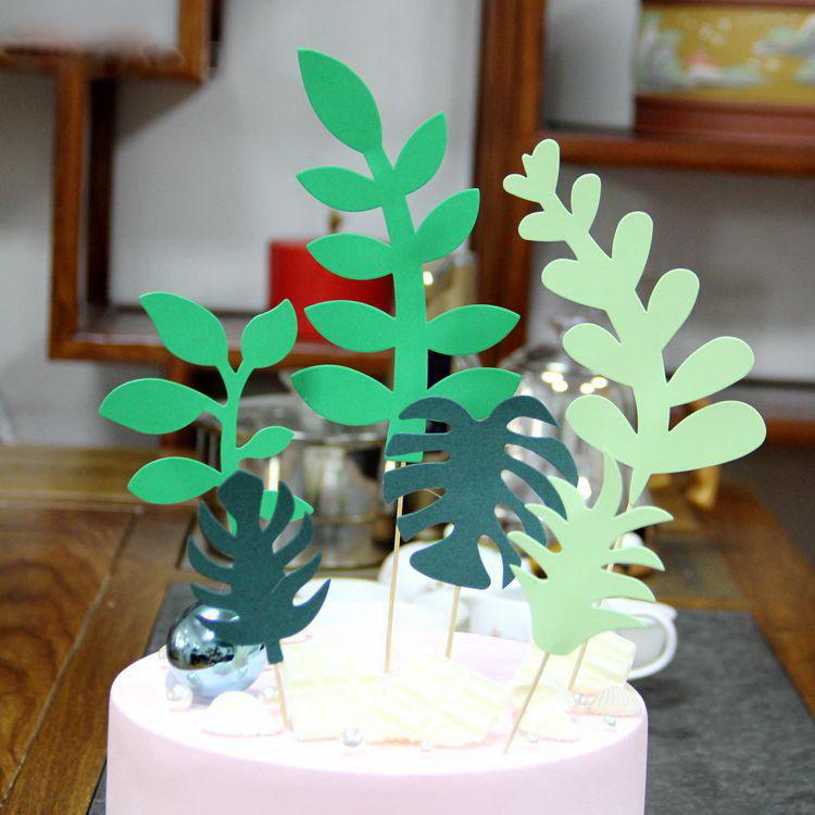 6 unids/set Palma hoja pastel Topper partido decoración Cupcake Tarjeta de papel de inserción Banner