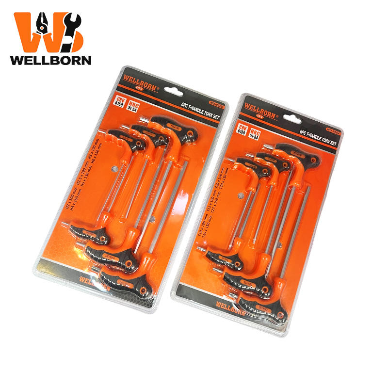 Juego de 6 Llaves Torx con Mango en T, Juego de Llaves Torx de Seguridad T10-T30, Juego de Destornilladores en Forma de T de Acero CR-V con Orificios Antimanipulación