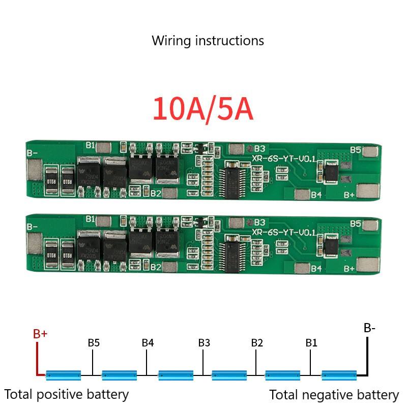 Sistema de Gestión de Baterías BMS 6S 5A, Placa de Circuito de Protección de Baterías de Iones de Litio BMS 6S 22V 10A, Módulo PCB para Columpios para Bebés