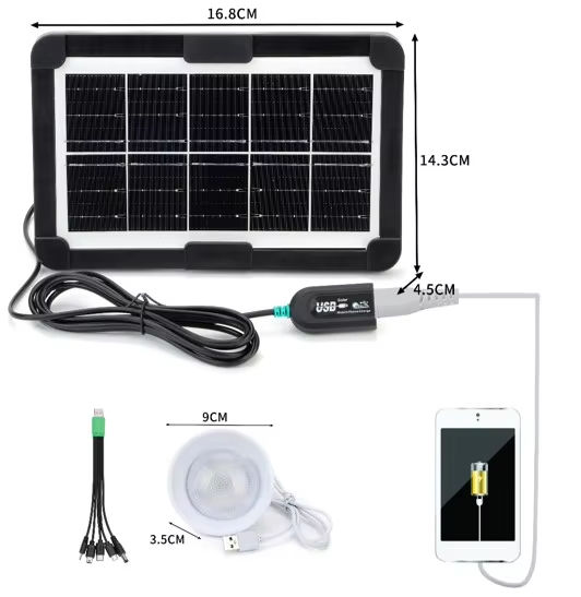 6V3W Mini Solar Panel with USB Stabilizer Portable 5-in-1 Cable Charger for Phones Small Size Garden Application Solar Panel