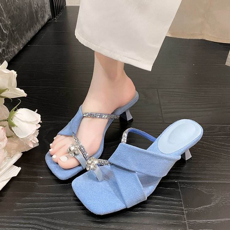 Sandalias de Tacón Alto con Pedrería Estilo Francés 6W588, Nuevo Estilo Elegante de Alta Gama, Tira Delgada, Punta Cuadrada, Sandalias Abiertas