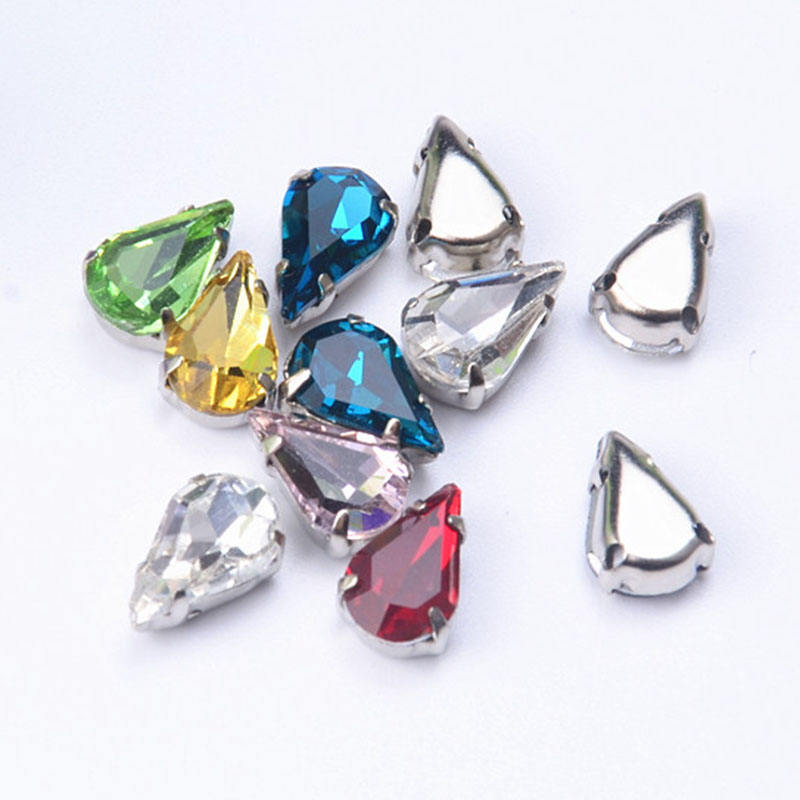 Cristales de imitación de cristal en forma de gota de agua de 6x10mm con engaste plateado de 4 agujeros, adornos de cristal para vestidos, manualidades y joyería DIY