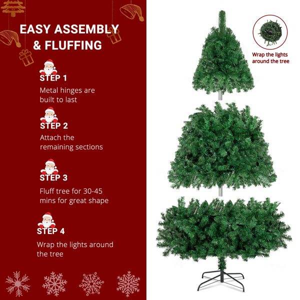 Árbol de Navidad de PVC de 1.8 m para Armar, 150 Luces Cálidas, 8 Modos, 1050 Ramas Verdes, 8 Modos