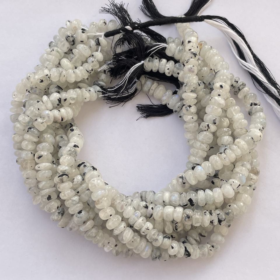 Product Name:Natural Black Spot White Rainbow Moonstone Stone Smooth Rondelle Beads