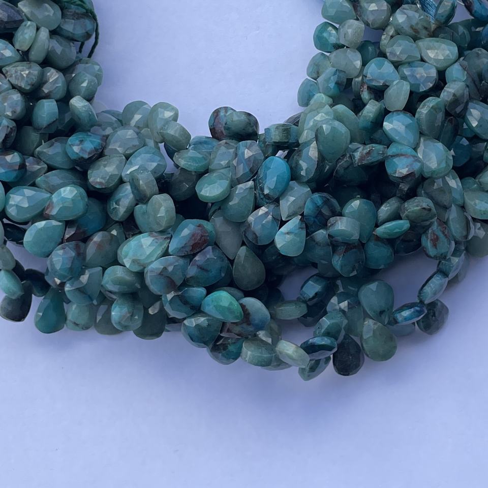 Product Name:Natural Chrysocolla Stone Pear Shape Faceted Cut Briolette Beads