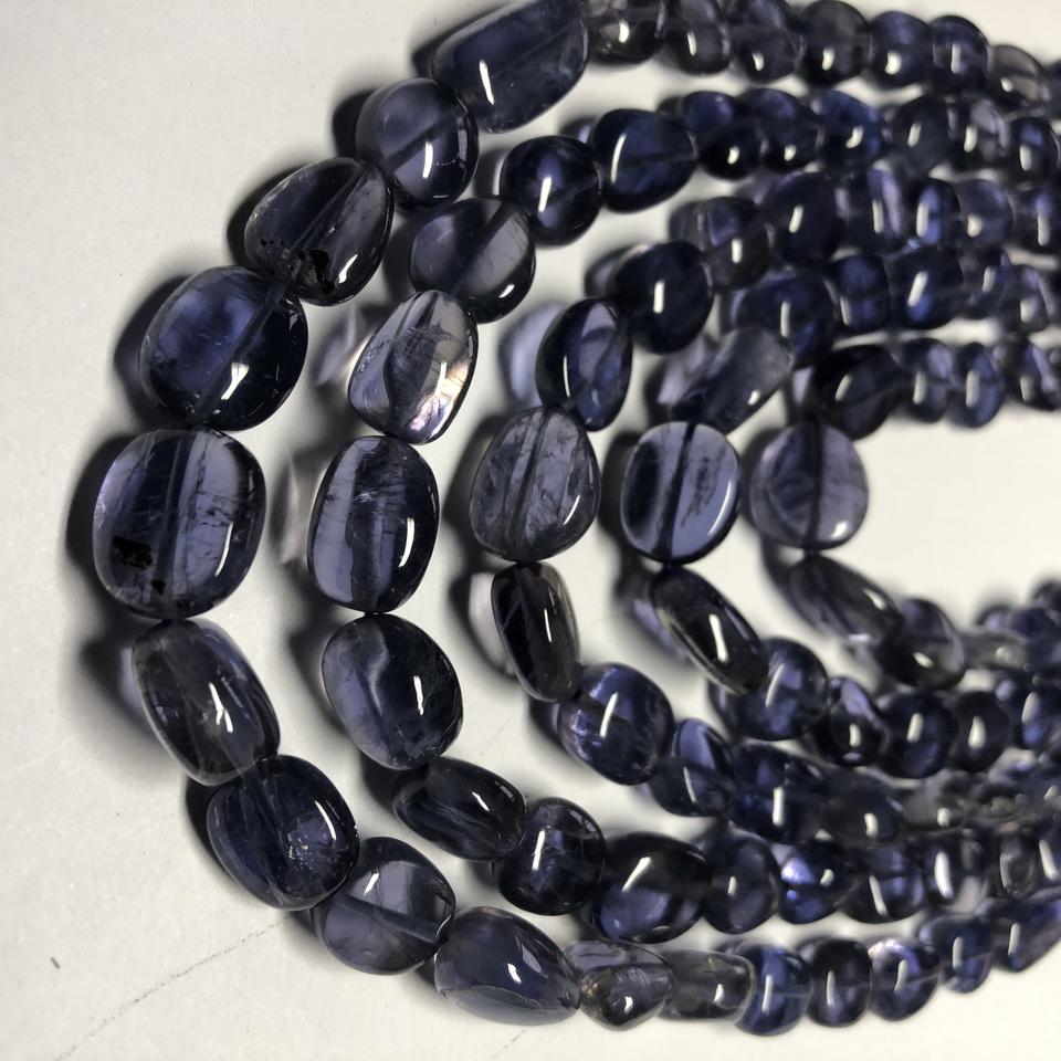 Product Name:Natural Blue Iolite Smooth Tumble Nuggets Gemstone Beads Strand