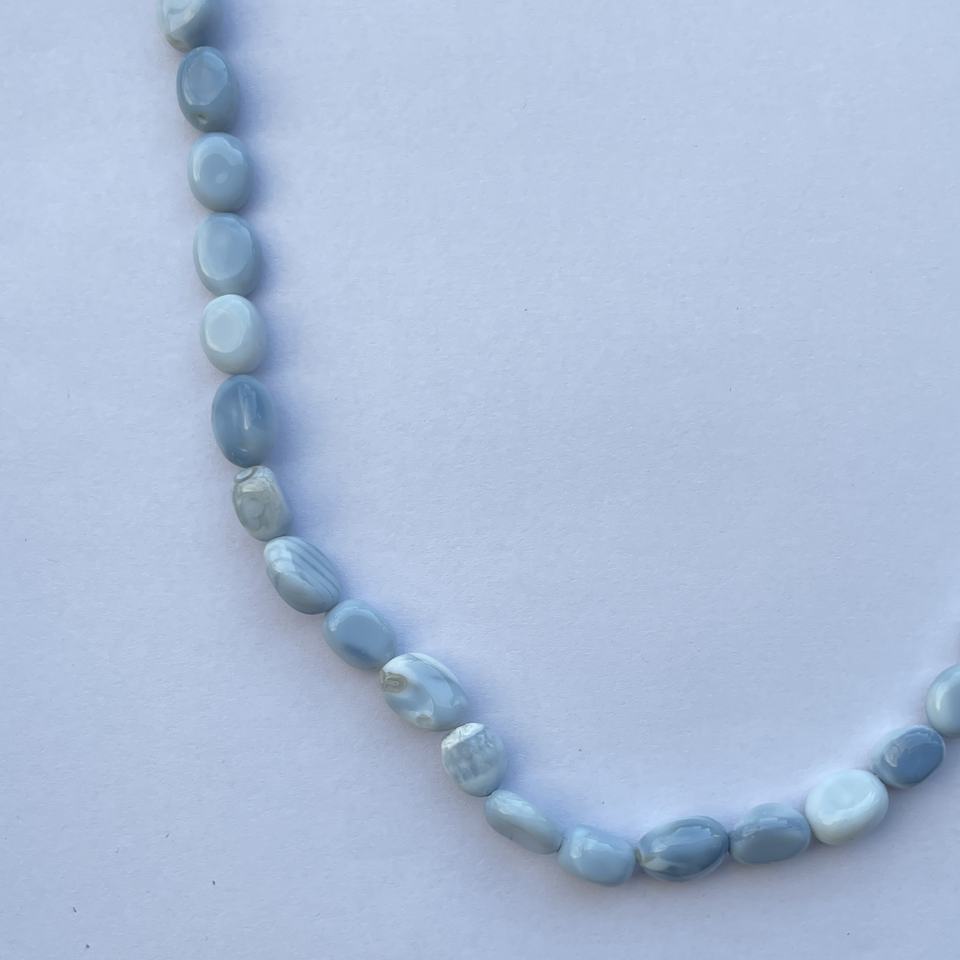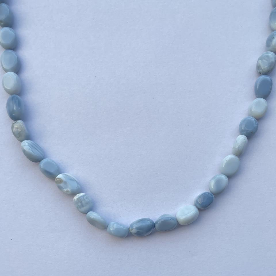 Product Name:Natural Blue Opal Stone Smooth Oval Gemstone Beads Necklace