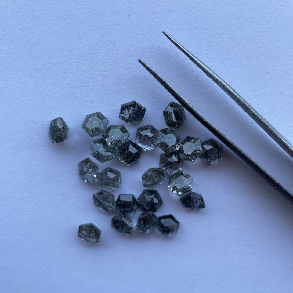 Product Name:6mm 8mm Natural Black Rutile Quartz Stone Faceted Hexagon Cut Gemstone