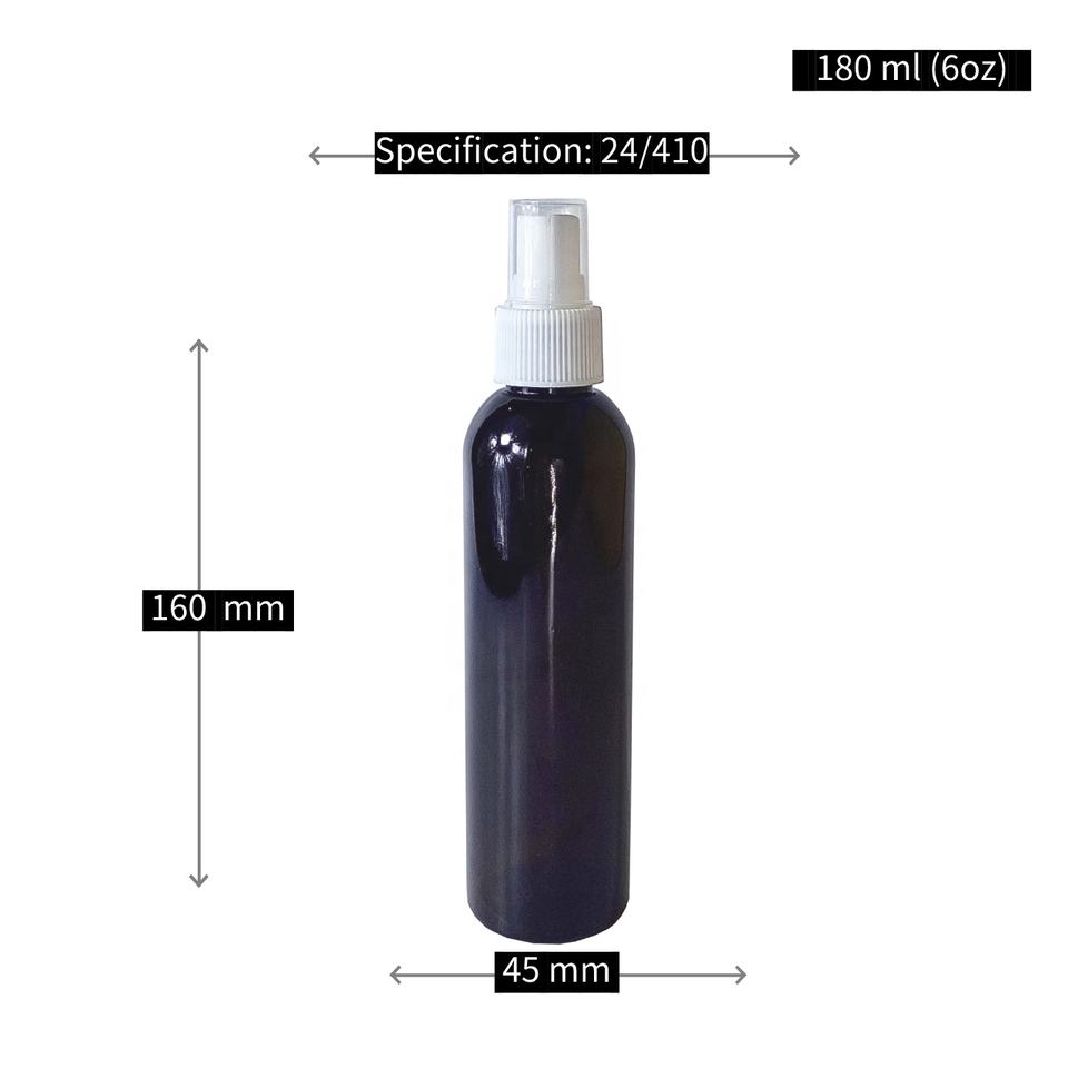 Botellas de Plástico PET Transparentes de 6oz con Forma de Bala, con Tapas de Disco Abatibles Blancas y Negras y Pulverizador