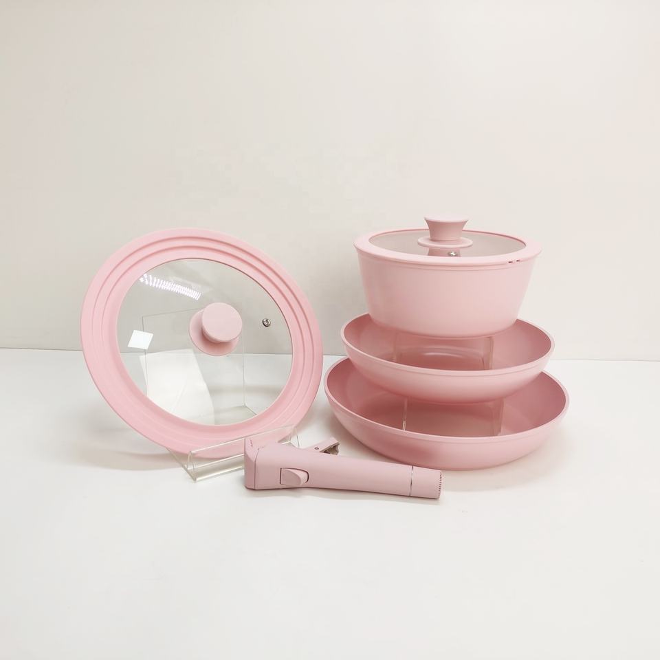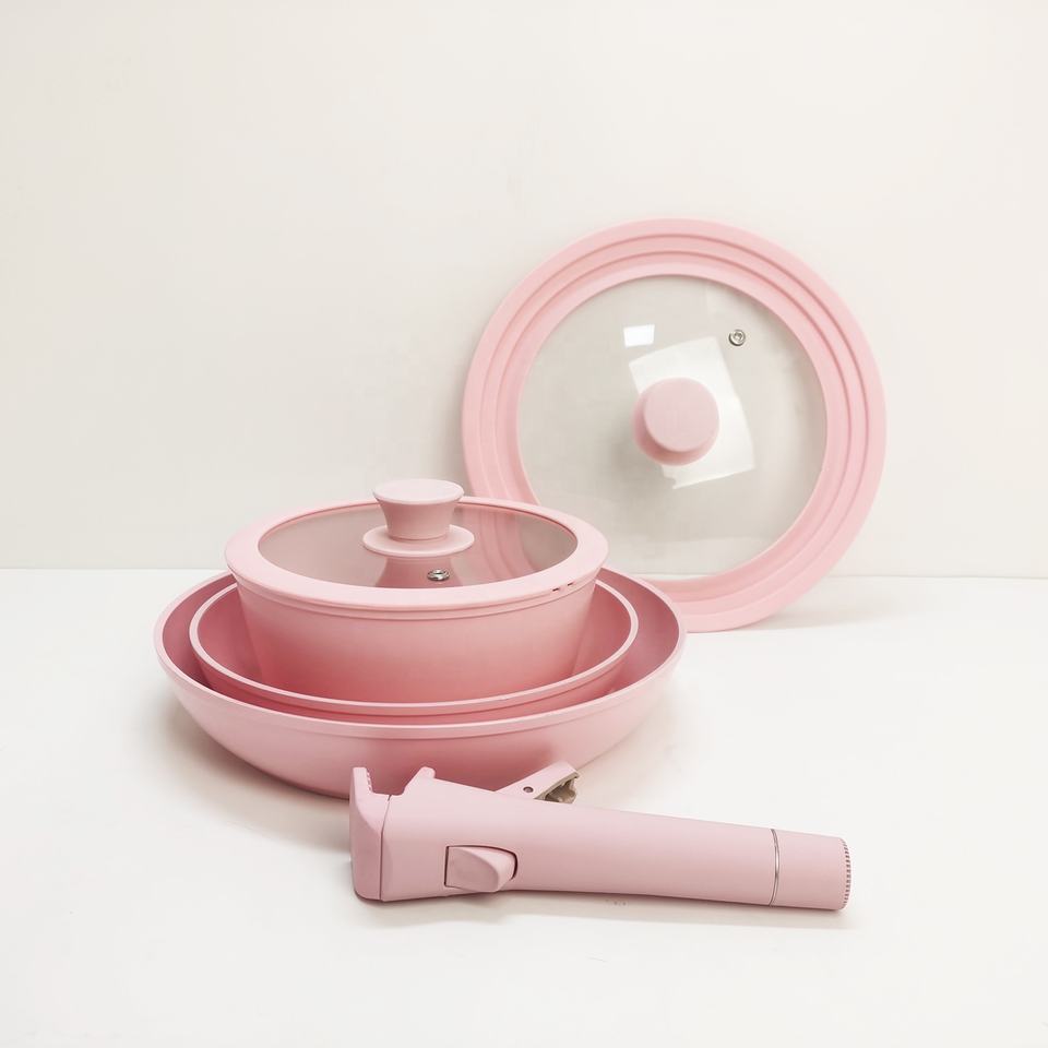 Nombre del producto:6PCs forjó el sistema de cerámica rosado de aluminio con la manija desmontable