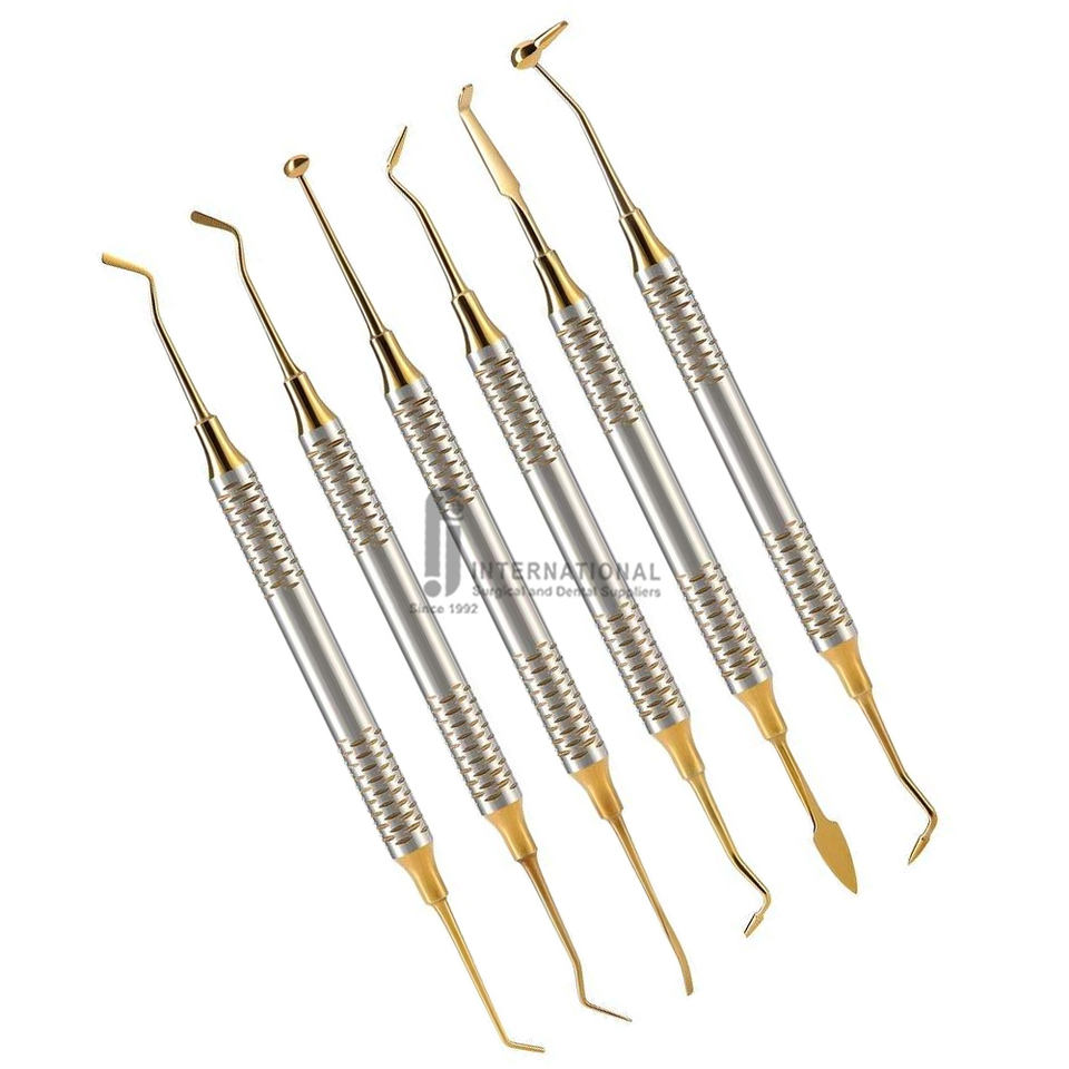 Juego de 6 Instrumentos Manuales de Alta Calidad para Relleno de Resina Dental, Espátula de Relleno de Resina, Recubrimiento de Titanio, Agarre Ergonómico