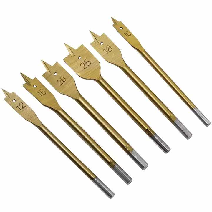 Juego de 6 Brocas de Espiga Hexagonales con Recubrimiento de Titanio Kangalu, Vástago de 1/4\", Tamaños de 10-25 mm, Herramientas Eléctricas para Perforar Madera, 1 Año de Garantía
