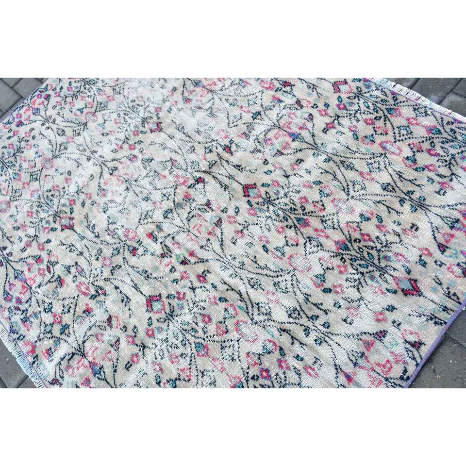 Alfombra Vintage de 6x4.3 pies, Alfombra Turca, Alfombra de Lana con Borde Azul