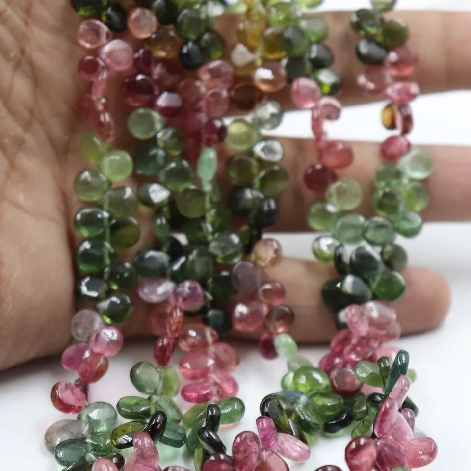 Nombre:Cuentas Lisas de Turmalina Multicolor en Forma de Pera