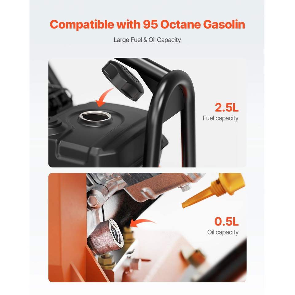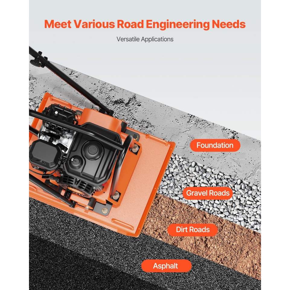 Compactadora de Placas con Motor de Gasolina de 7.0 HP, Fuerza de Compactación por Vibración de 4451.22 Lbf, 432 Pulgadas Cuadradas Compactadora de Placa Giratoria de 5400 RPM para Suelos