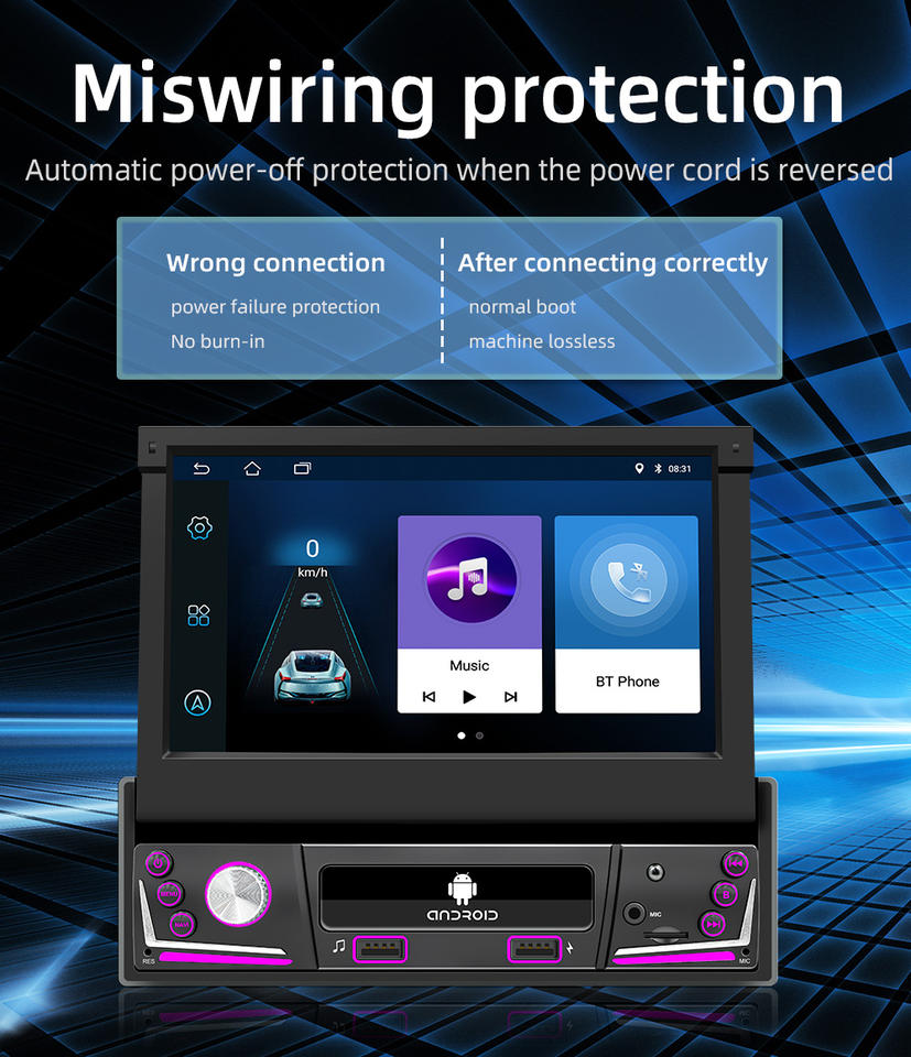 7 "1DIN Android11 Pantalla HD retráctil Electrónica automática 1 + 16G/2 + 32G/2 + 64G WiFi Navegación GPS Radio de coche Estéreo universal