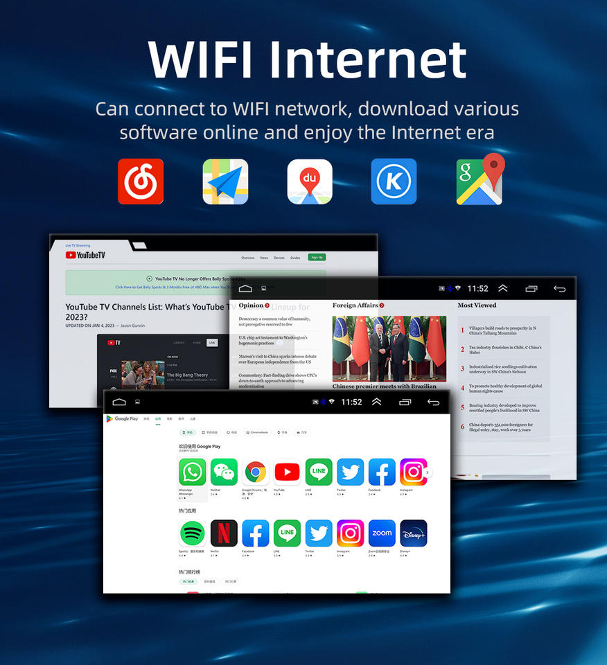 Enlace espejo, MP3/MP4, Pantalla táctil, Visor de imágenes, Sintonizador Radio, Cargador de coche, Control remoto, Amplificador, 3D mapa, Cámara de copia de seguridad, Guía de voz, Control del Volante, Pantalla dividida, Carretera de planificación, Par de torsión, Distancia de advertencia, Invertir la ayuda, En directo/aparcamiento, En directo/Live el tráfico, MultiMedia apoya, De modo Dual, sistema de navegación, Velocidad de alerta, Brújula digital, Construir-en el micrófono, Adas, La voz de interacción, OtrosFunción