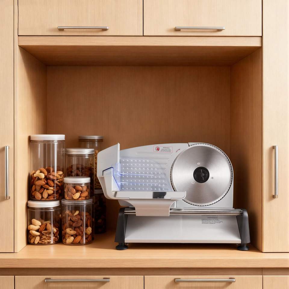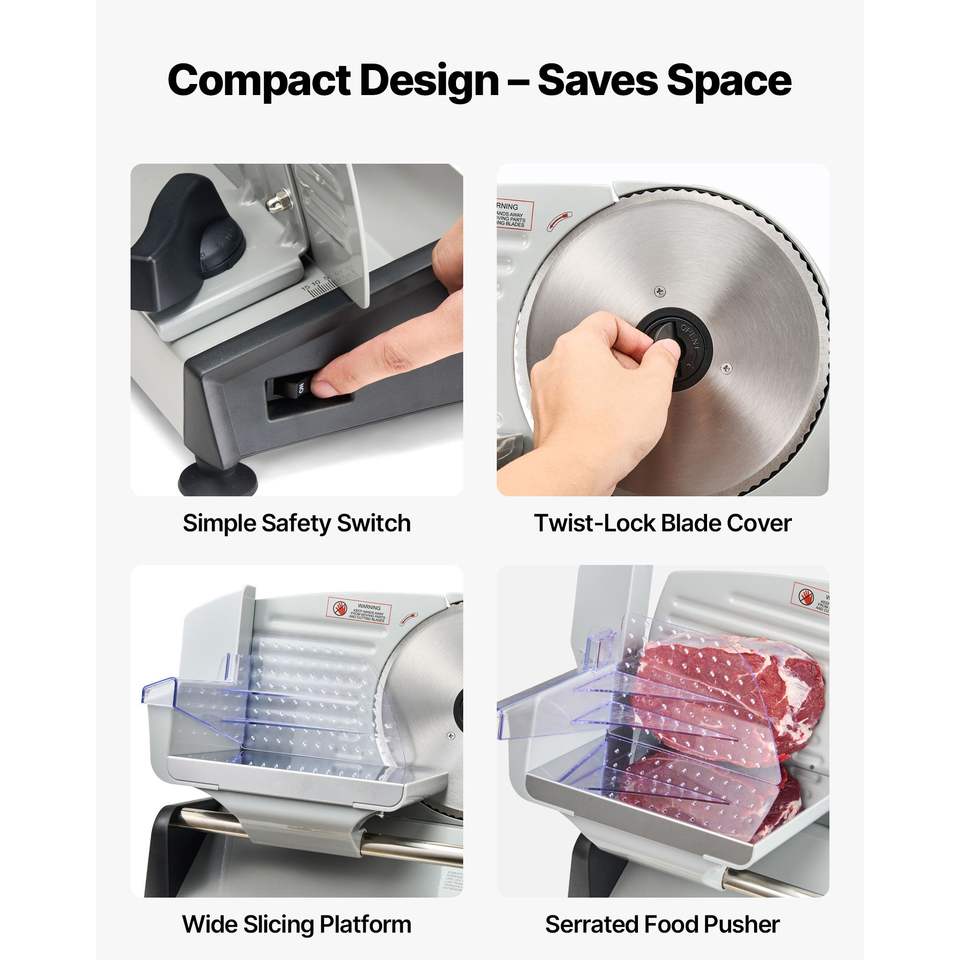 Rebanadora Eléctrica de 7.5 Pulgadas y 200W, Cuchilla SUS420, Grosor Ajustable de 0-0.6 Pulgadas, Certificación ETL, Picadora y Rebanadora de Carne para el Hogar