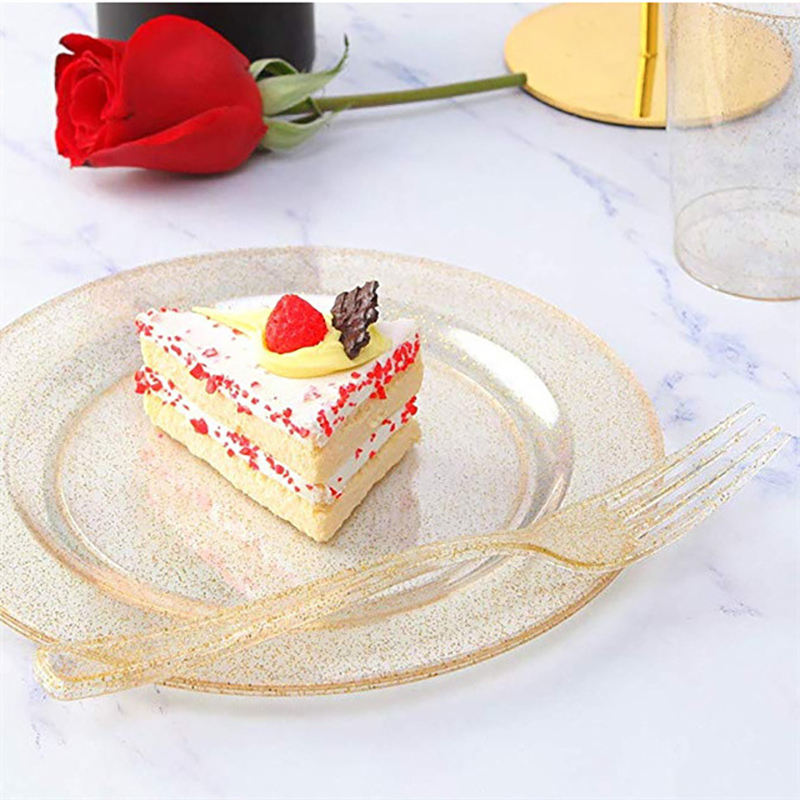 Platos redondos de plástico con purpurina dorada de 7,5 pulgadas para bodas y fiestas para servir postres y ensaladas